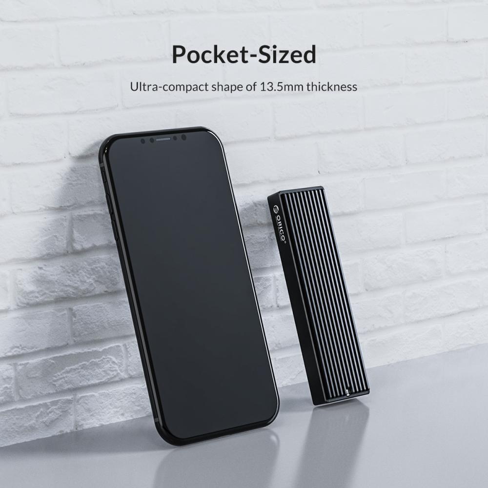 The ORICO M2PV-C3 is a high-speed M.2 NVMe SSD enclosure, designed to provide fast and portable storage. Constructed from a durable blend of aluminum alloy and ABS plastic, it boasts a sleek black finish and compact dimensions of 108mm x 29.5mm x 13.5mm. Featuring a USB3.1 GEN2 Type-C output interface, it delivers impressive transfer speeds of up to 10Gbps. This enclosure supports a maximum capacity of 2TB and is compatible with M.2 NVMe SSDs. Installation is tool-free, with a secure screw-based fixing mechanism. It includes both USB Type-A to Type-C and USB Type-C to Type-C data cables (0.15m each) and is compatible with Windows, Mac OS, and Linux operating systems.
